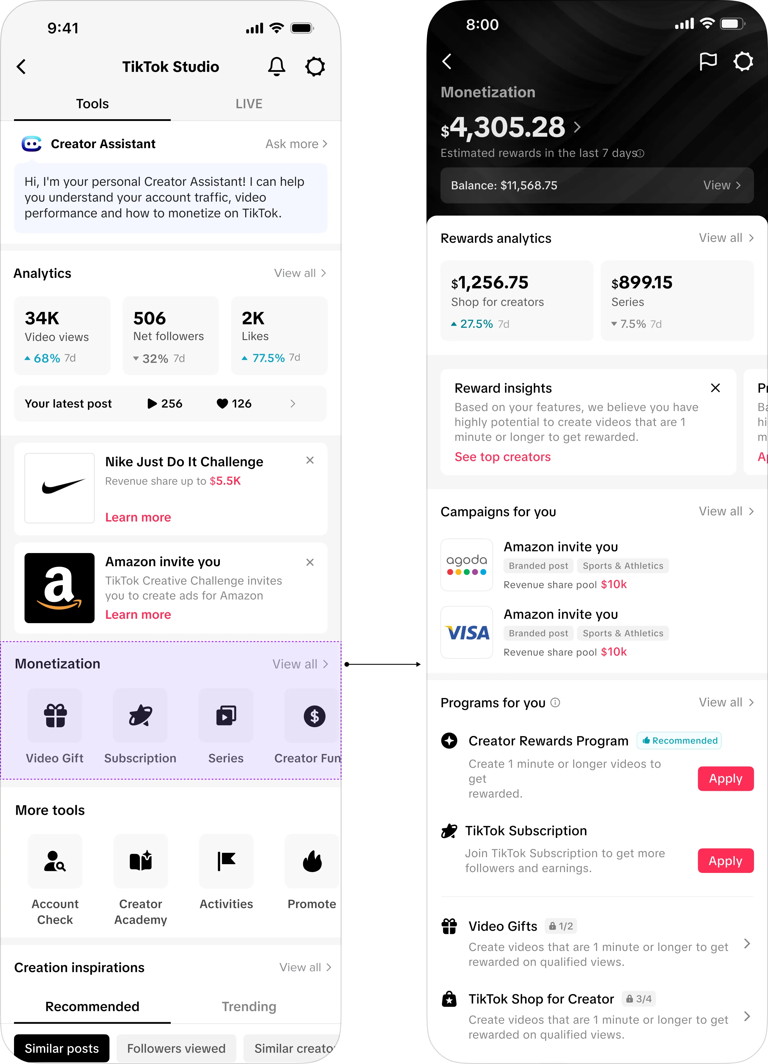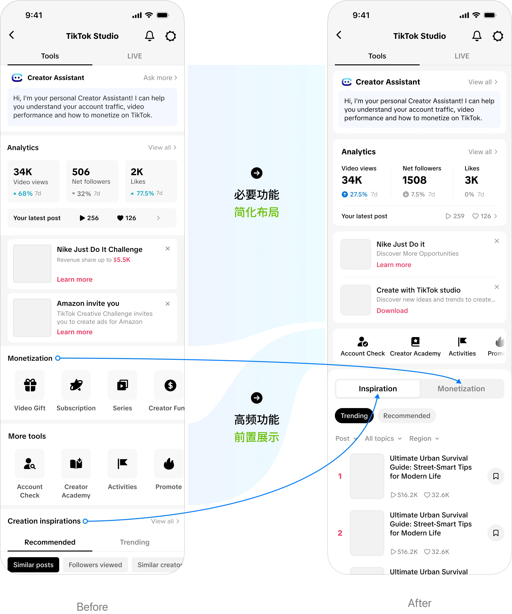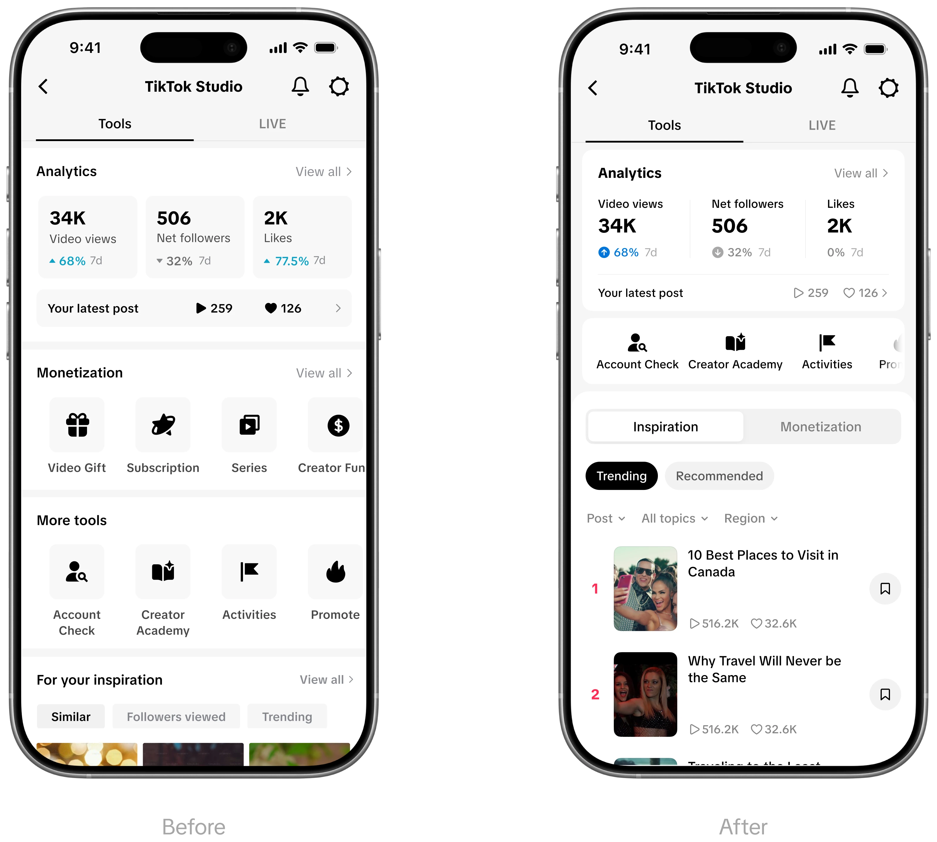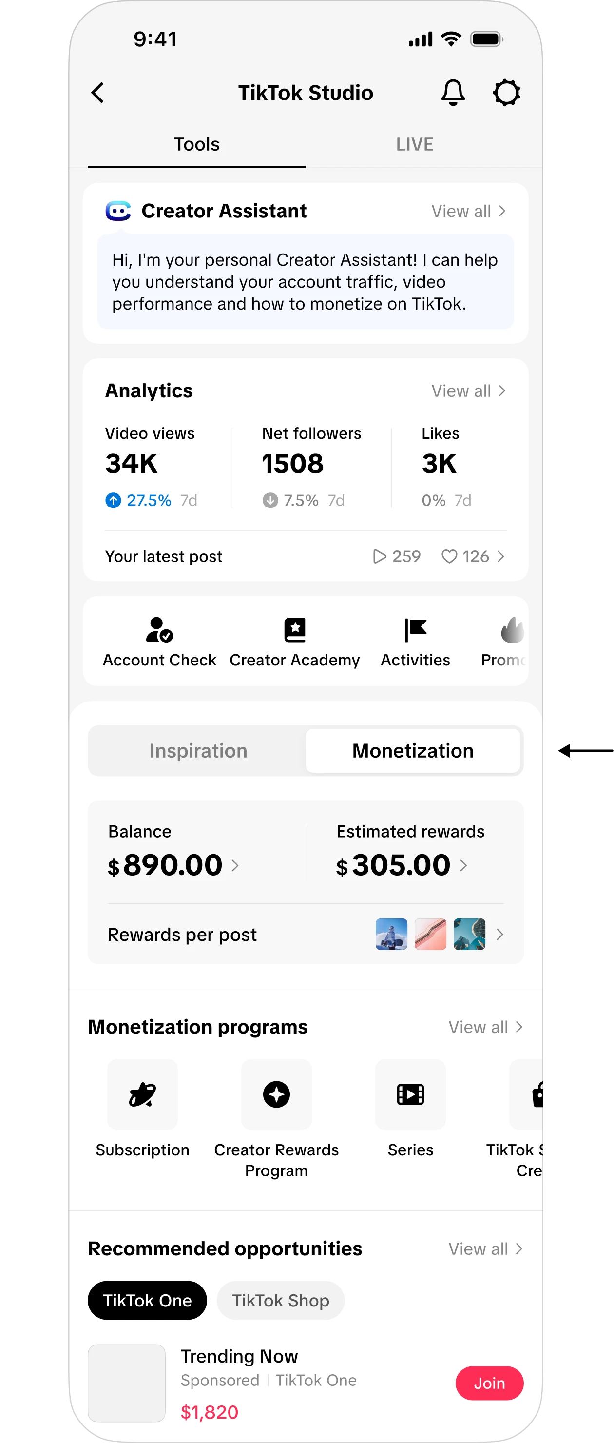 TikTok Studio 是集合了「作者教育、数据分析、作者变现、灵感发现、创作工具」等功能的综合平台(即创作者中心)。