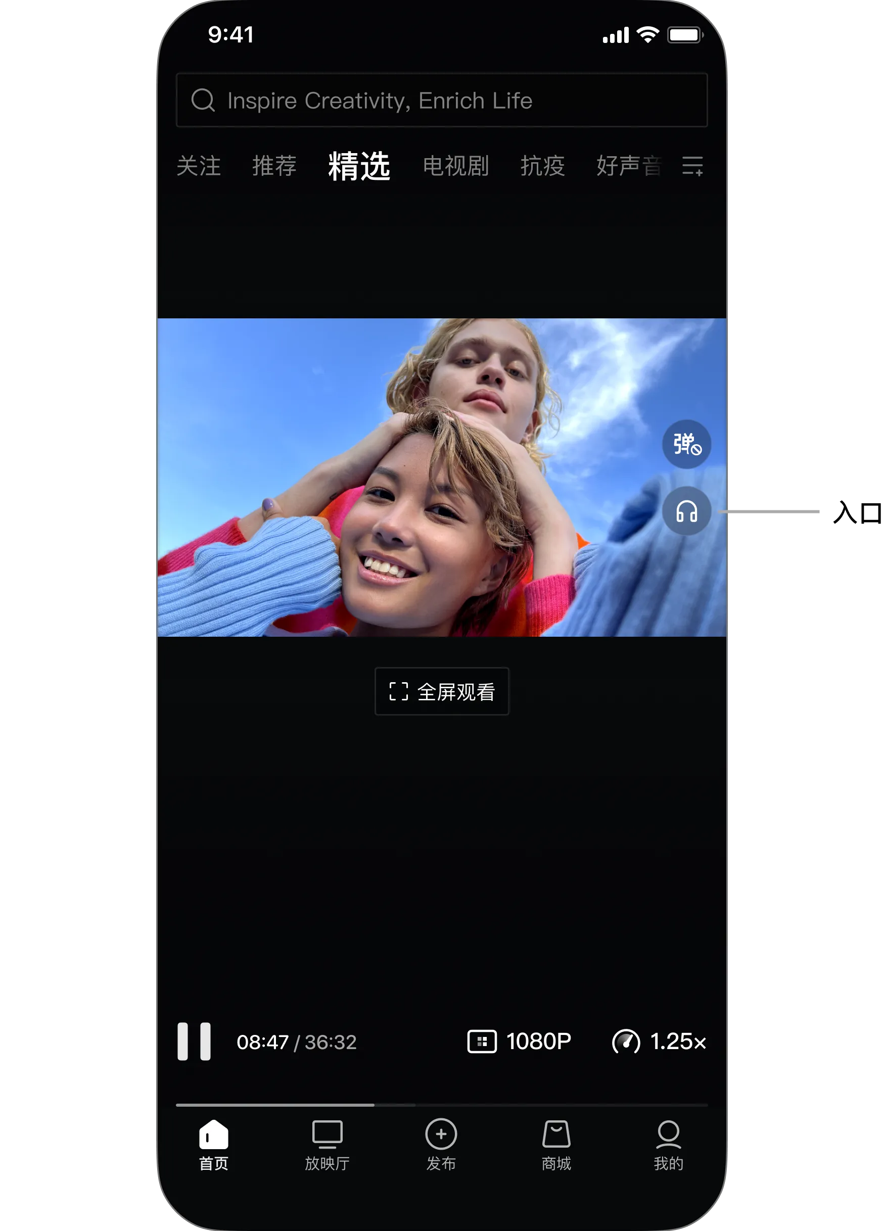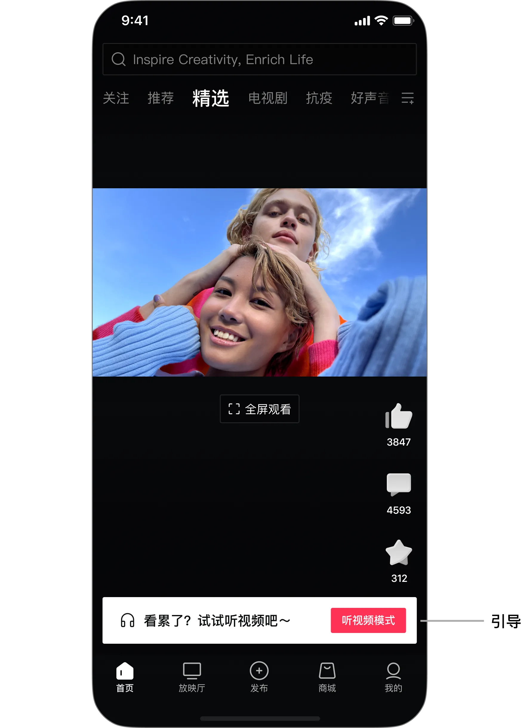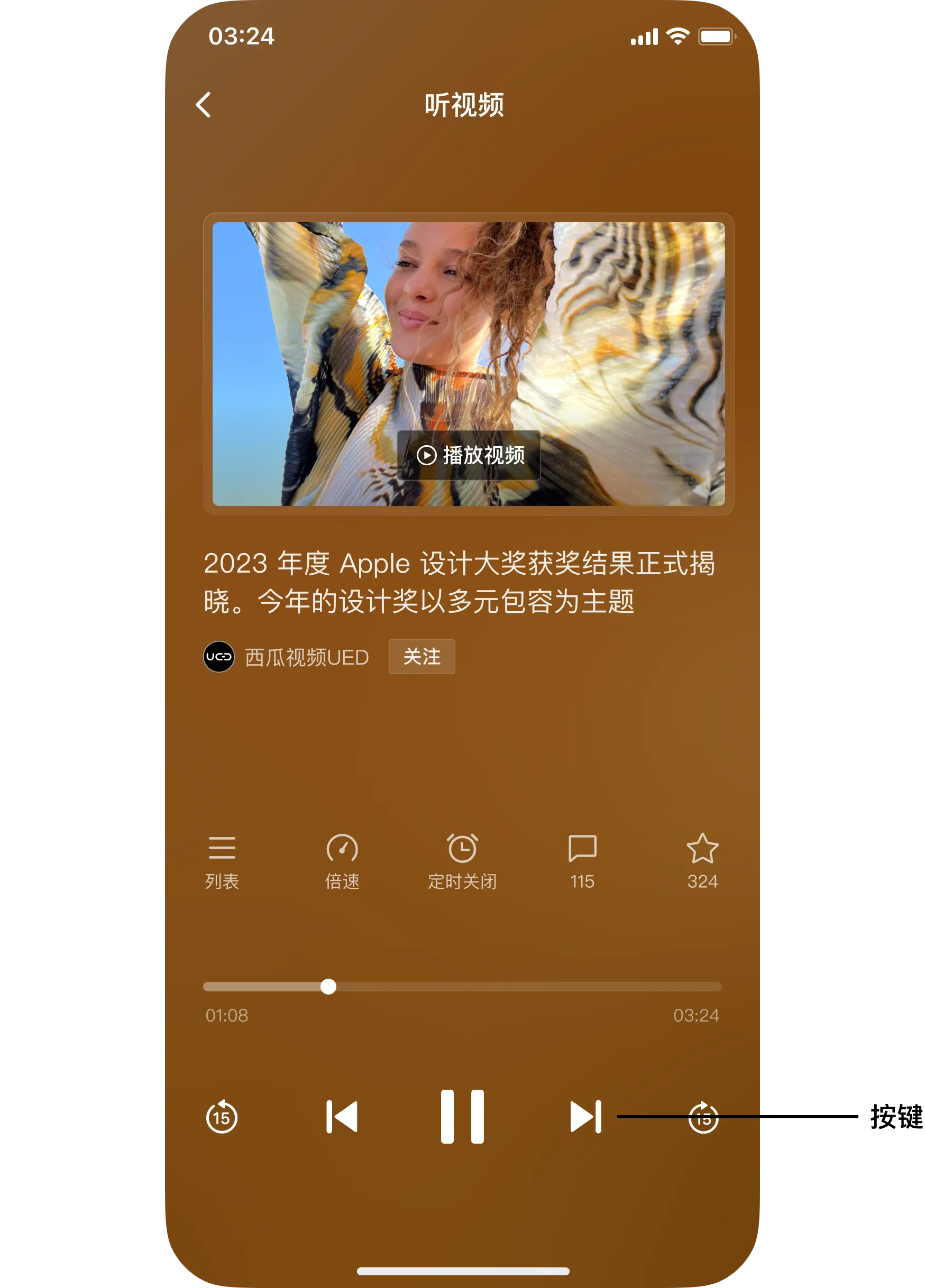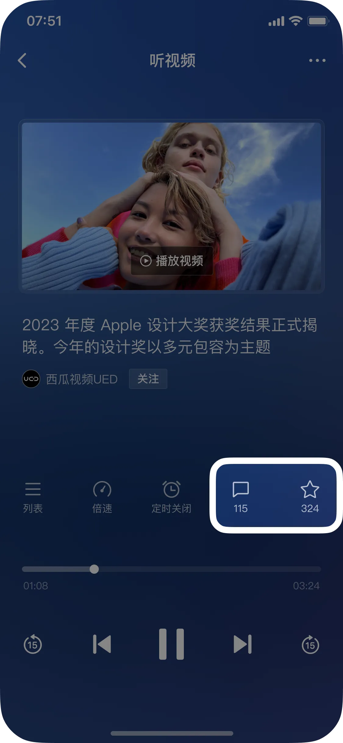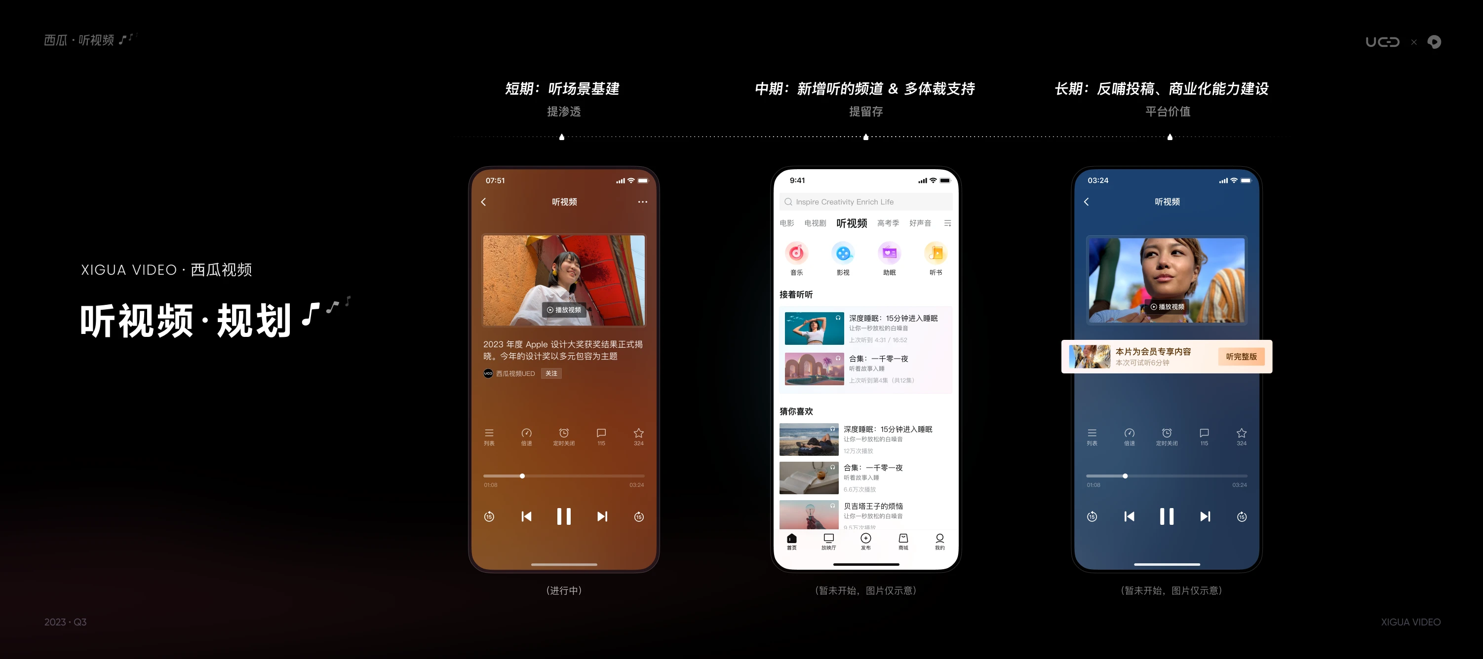 增加播放器,使视频内容能够以音频形态在前台 / 后台 稳定播放,覆盖用户开车、家务、助眠等 "不可看屏" 的场景。